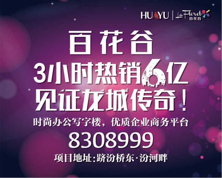 6月28日,華宇百花谷寫字樓逆市熱銷,實現(xiàn)3小時6個億的傳奇業(yè)績,再創(chuàng)龍城新標桿。今天,25年底蘊的華宇集團精雕細琢的百花谷(La Flet)鼎立太原,項目整體由4棟高層以及商業(yè)裙樓組成,由一棟34層甲級超5A寫字樓、一棟27層時尚辦公寫字樓、一棟27層商務投資寫字樓、一棟26層的五星級酒店,以及7層的商業(yè)裙樓組成。我們可以驕傲的說“太原有百花谷”,百花谷將以她的獨有價值定義“新型城市綜合體”。